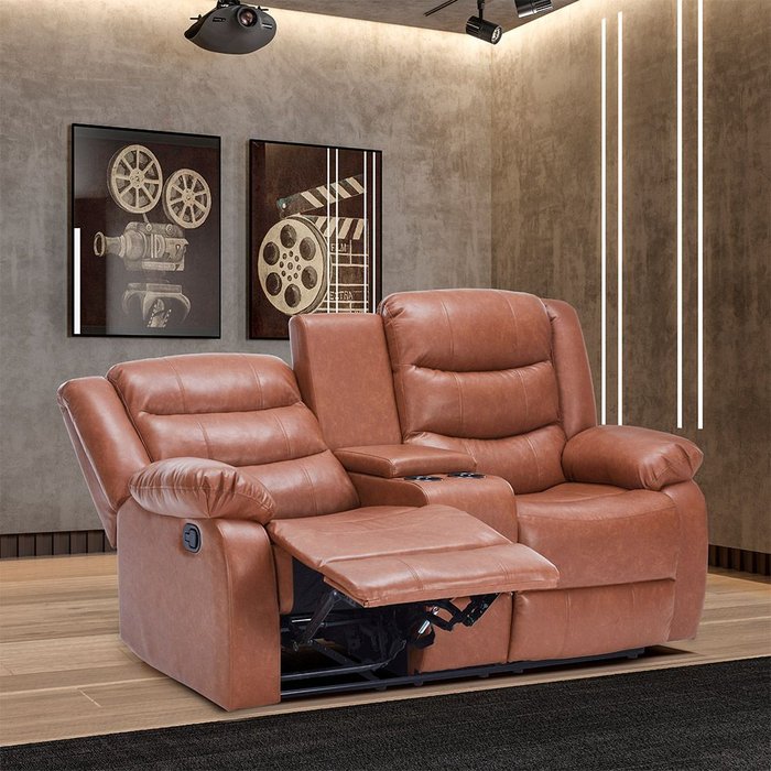 Sofá Reclinável Sala de Cinema 2 Lugares Massagem Aquecimento Hollywood Manual Porta Copos Baú Centr