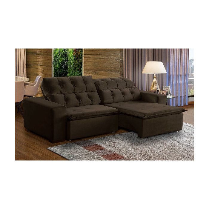 Sofá Retrátil 2,30M Mola Bonel D28 Pillow Reclinável Alasca Veludo Marrom Escuro - Grandellar
