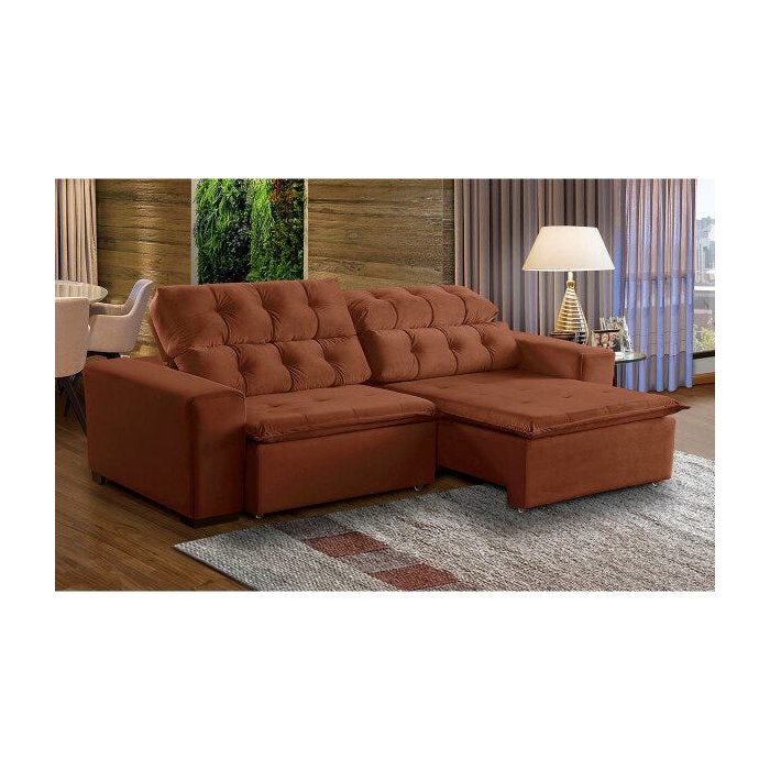 Sofá Retrátil 2,50M Mola Bonel D28 Pillow Reclinável Alasca Veludo Cobre - Grandellar