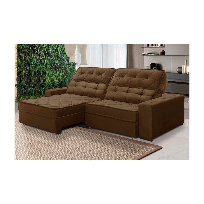 Sofá Retrátil 2,70M 4 Lugares Duplo Molejo Reclinável D28 Passion Veludo Caramelo - Grandellar