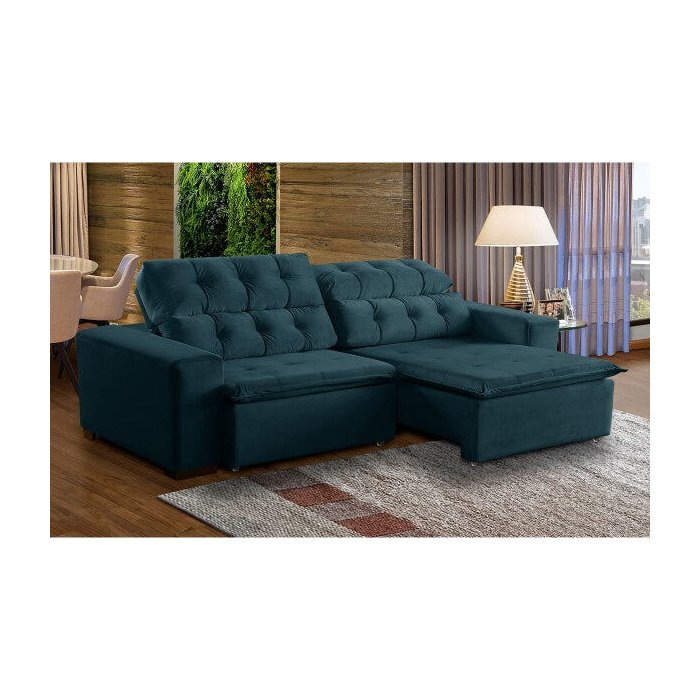 Sofá Retrátil 2,70M Mola Bonel D28 Pillow Reclinável Alasca Veludo Azul - Grandellar