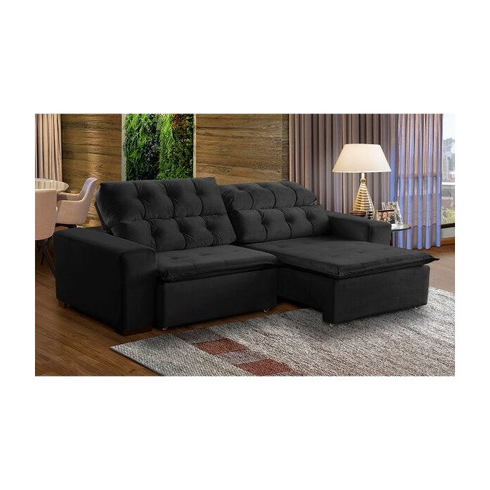 Sofá Retrátil 2,70M Mola Bonel D28 Pillow Reclinável Alasca Veludo Preto - Grandellar