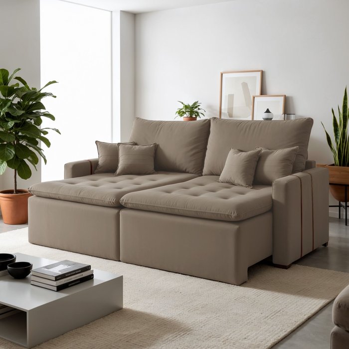 Sofá Retrátil 2 Lugares 220 Cm Chicago Bege