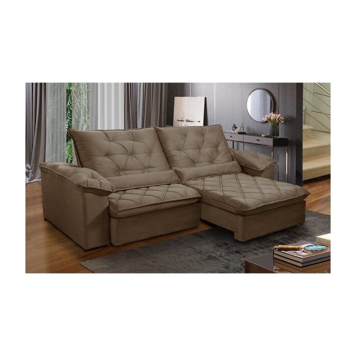 Sofá Retrátil 230 Cm 4 Lugares Duplo Molejo Pillow D28 Portinari Veludo Bege Escuro - Grandellar
