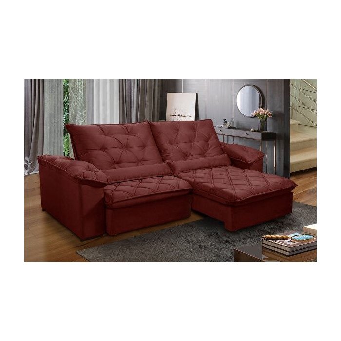 Sofá Retrátil 250 Cm 4 Lugares Duplo Molejo Pillow D28 Portinari Veludo Vermelho - Grandellar