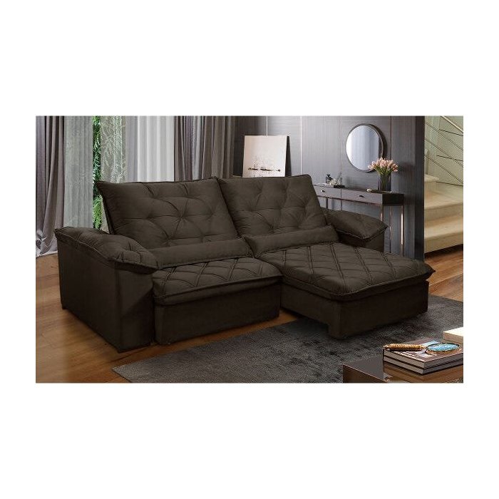 Sofá Retrátil 290 Cm 5 Lugares Duplo Molejo Pillow D28 Portinari Veludo Marrom Escuro - Grandellar