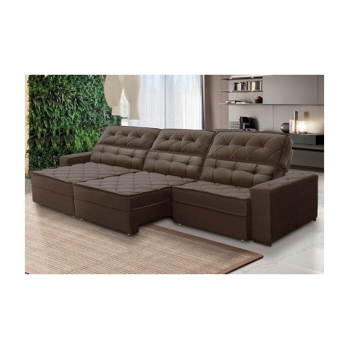 Sofá Retrátil 3,50M 6 Lugares Duplo Molejo Reclinável D28 Passion Veludo Marrom Claro - Grandellar