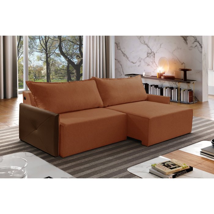Sofá Retrátil 3 Lugares 170cm Braço em Corino com USB Veludo Serena Yescasa Marrom Cobre