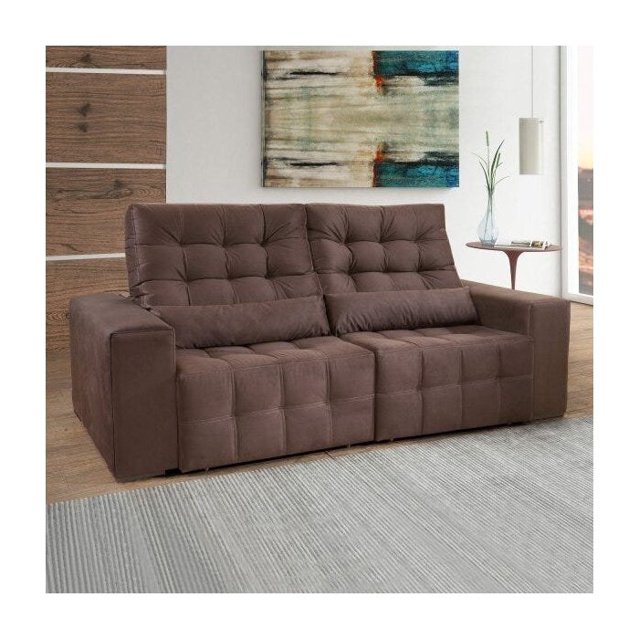 Sofá Retrátil 3 Lugares Portugal Fatto Estofados Veludo Marrom 205