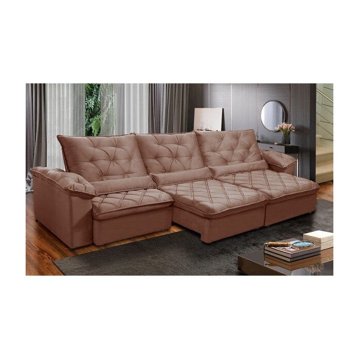 Sofá Retrátil 380 Cm 7 Lugares Duplo Molejo Pillow D28 Portinari Veludo Rosa Escuro - Grandellar