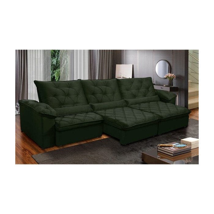 Sofá Retrátil 380 Cm 7 Lugares Duplo Molejo Pillow D28 Portinari Veludo Verde - Grandellar