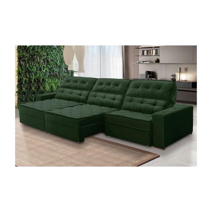 Sofá Retrátil 4,10M 8 Lugares Duplo Molejo Reclinável D28 Passion Veludo Verde - Grandellar