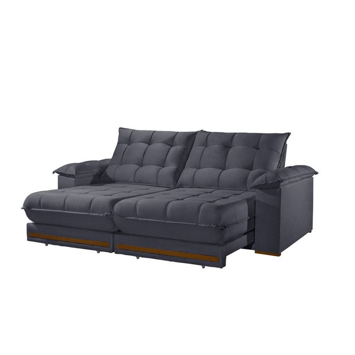 Sofá Retrátil Barcelona 2,90m 5 Lugares Molas Ensacadas Txr Cinza