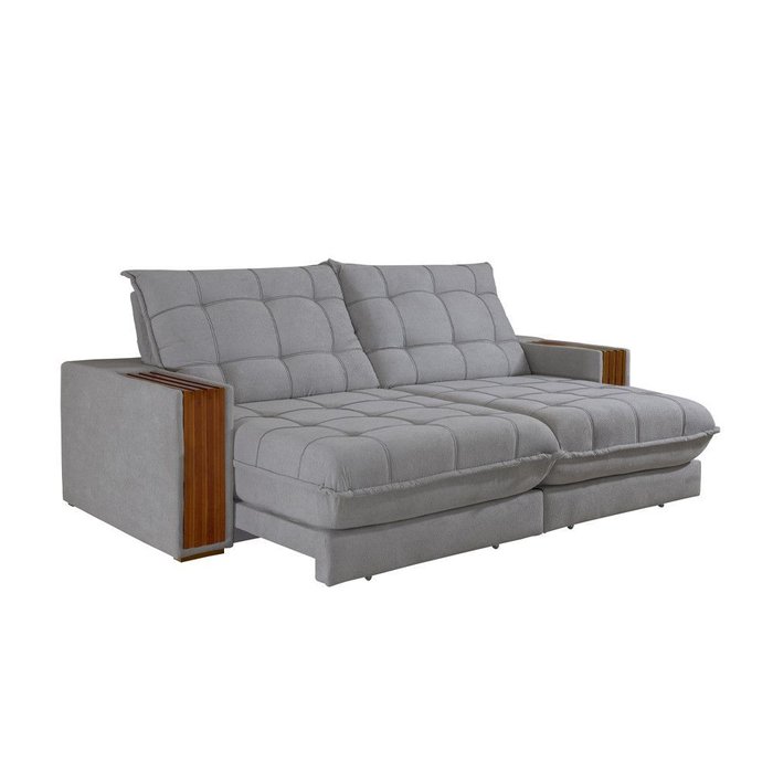 Sofá Retrátil Berlim 2,90m 5 Lugares Molas Ensacadas Txr Prata