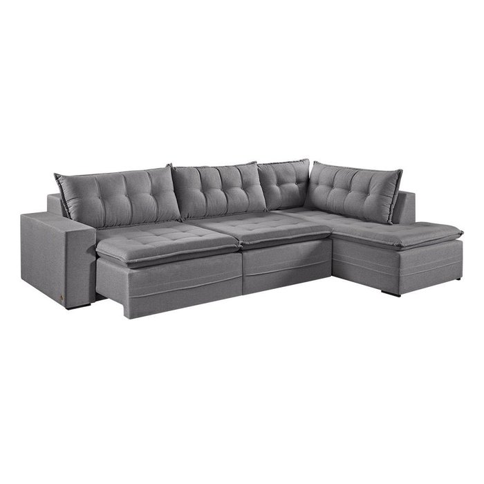 Sofá Retratil com Chaise Direita Titan 6 Lugares 3,16m Tecido Linho Cinza 2323