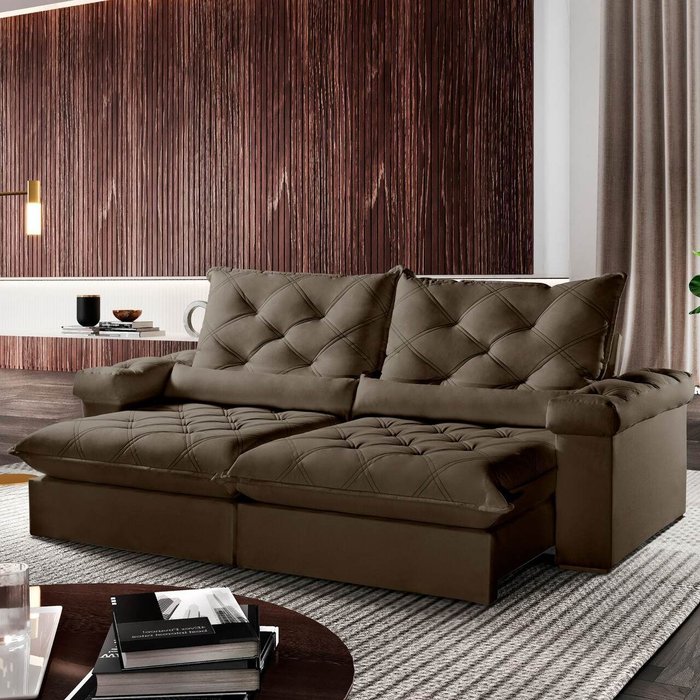 Sofá Retrátil e Reclinável 2,00m 4 Lugares Pillow com 18cm Fibra Siliconada Veneza - Movenzo Estofados