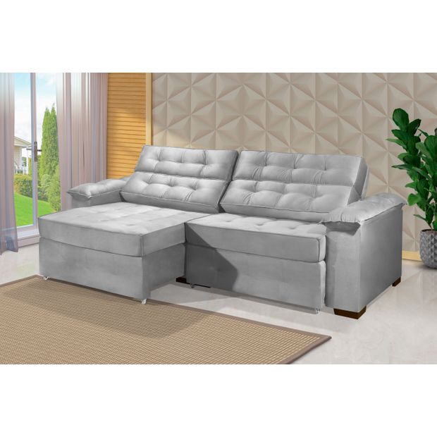Sofá Retrátil e Reclinável 2,10m Estilo Estofados - Paris 2 Módulos com Velusoft D33 "prata" PRATA