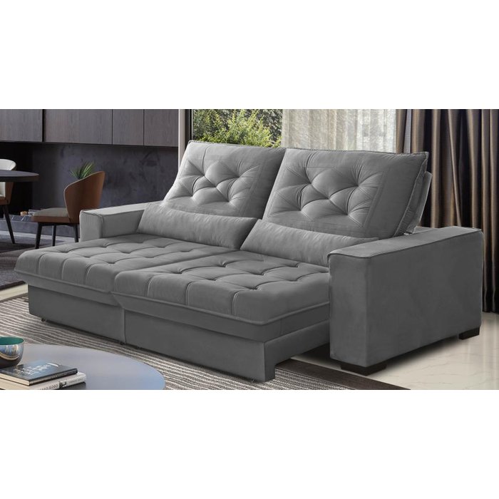 Sofá Retrátil e Reclinável 2,10m Suede Juliette Cinza
