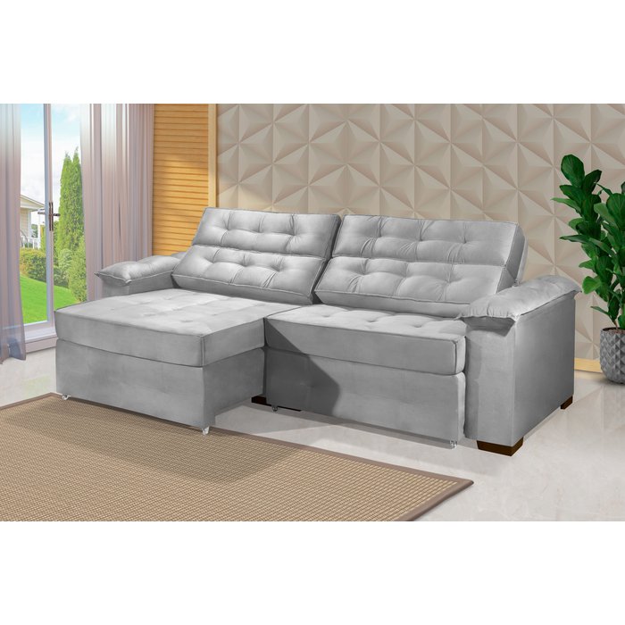Sofá Retrátil e Reclinável 2,30m Estilo Estofados - Paris 2 Módulos com Velusoft D33 "prata"