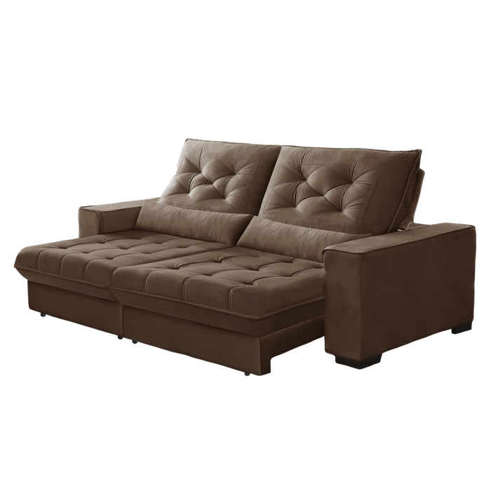 Sofá Retrátil e Reclinável 2,30m Pillow Top Suede Juliette Marrom Café