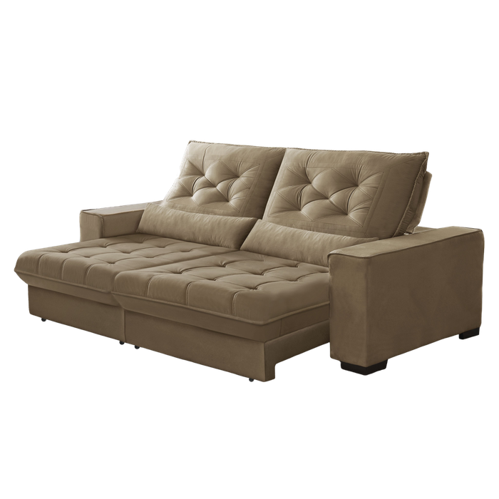 Sofá Retrátil e Reclinável 2,30m Pillow Top Suede Juliette Marrom Castor