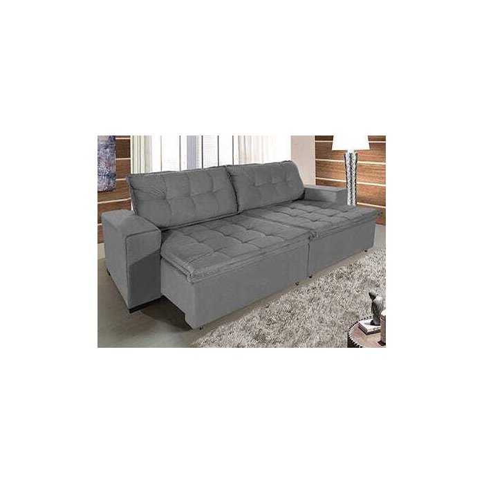Sofá Retrátil e Reclinável 2,30m Suede Austrália Cinza