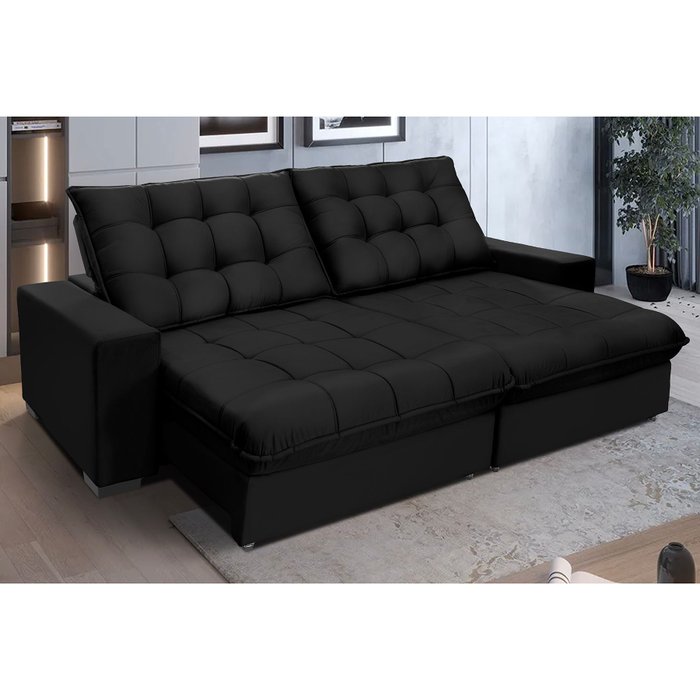 Sofá Retrátil e Reclinável 2,70m 5 Lugares Molas Ensacadas Pillow Top Califórnia Preto