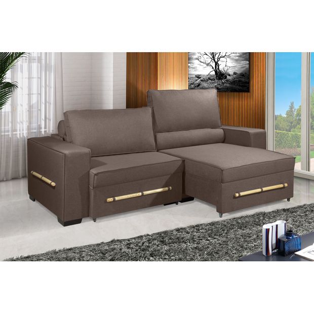 Sofá Retrátil e Reclinável 2.90m Estilo Estofados - Chayene com Softgel D33 Linho "marrom" Marrom