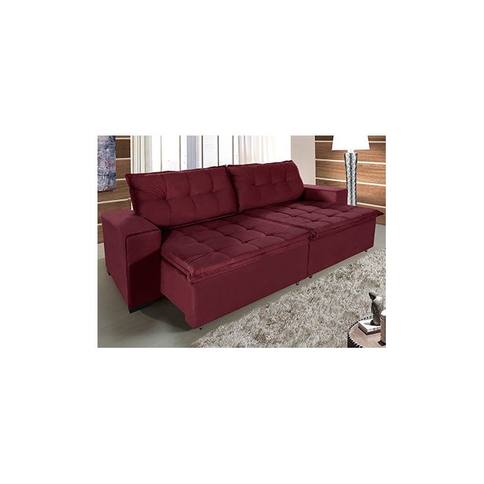Sofá Retrátil e Reclinável 2,90m Suede Austrália Vinho