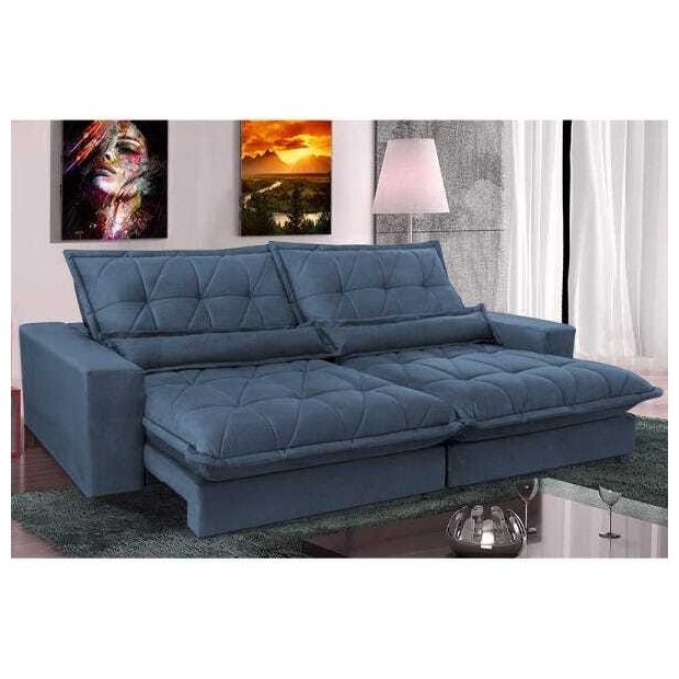 Ver imagem 1 de Sofá Retrátil e Reclinável 2,92m com Molas Ensacadas Cama Inbox Soft Tecido Suede Azul