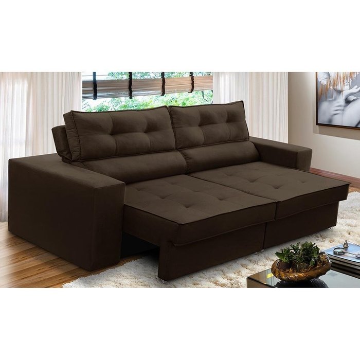 Sofá Retrátil e Reclinável 2 Lugares 1,50m com Molas Mirela Suede Adonai Estofados Marrom