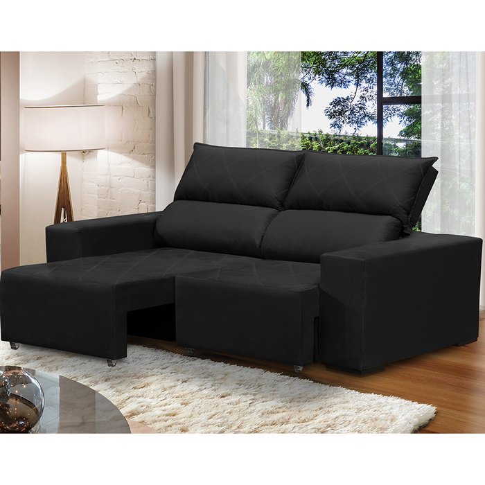Sofá Retrátil e Reclinável 2 Lugares 1,50m Virginia Suede Preto Arapongas Decor