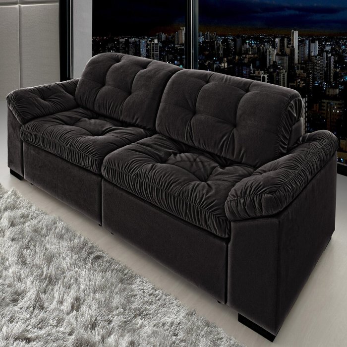 Sofá Retrátil e Reclinável 2 Lugares 260 Cm Pérola Veludo Preto