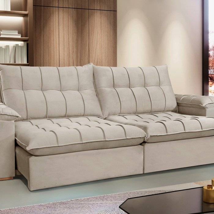 Seu design moderno e sofisticado transforma qualquer ambiente, enquanto a função retrátil e reclinável proporciona o máximo de relaxamento.