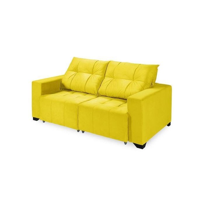 Sofá Retrátil e Reclinável 2 Lugares Veludo Amarelo