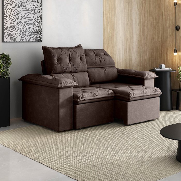 Sofá Retrátil e Reclinável 200cm Cupuaçu CabeCasa MadeiraOriginals Marrom