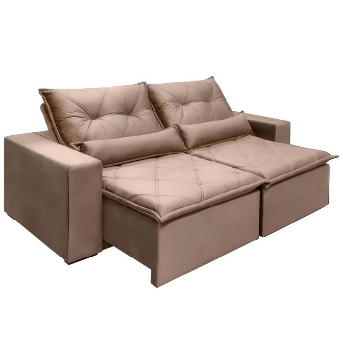 Sofá Retrátil e Reclinável 290cm Tozatto Caribe D26 com Mola e Veludo - Cacau Cacau
