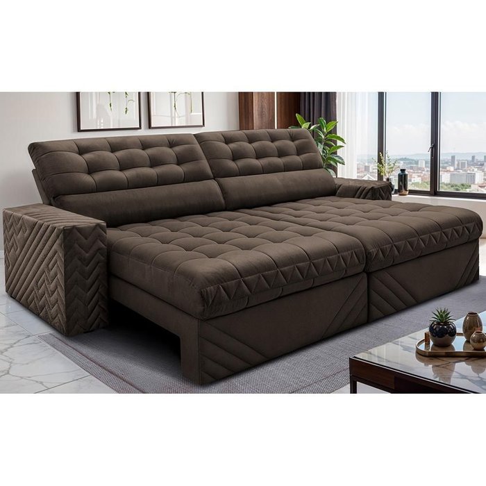 Sofá Retrátil e Reclinável 3,00m Molas Ensacadas Max Spring Velusoft Café Cama Inbox