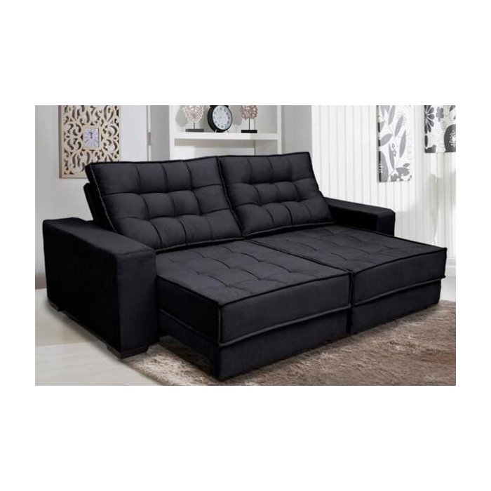 Sofá Retrátil e Reclinável 3,10m Suede Coliseu Preto