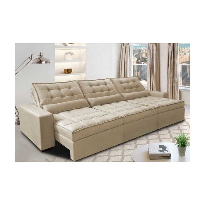 Sofá Retrátil e Reclinável 3.52M com Molas Ensacadas Cama Inbox Gold Tecido Suede Velusoft Bege Bege
