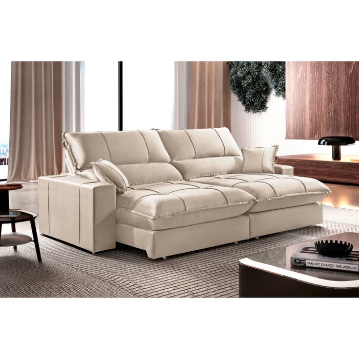 Sofá Retrátil e Reclinável 3 Lugares 170cm com Molas Ensacadas e Pillow Top Eros Bege