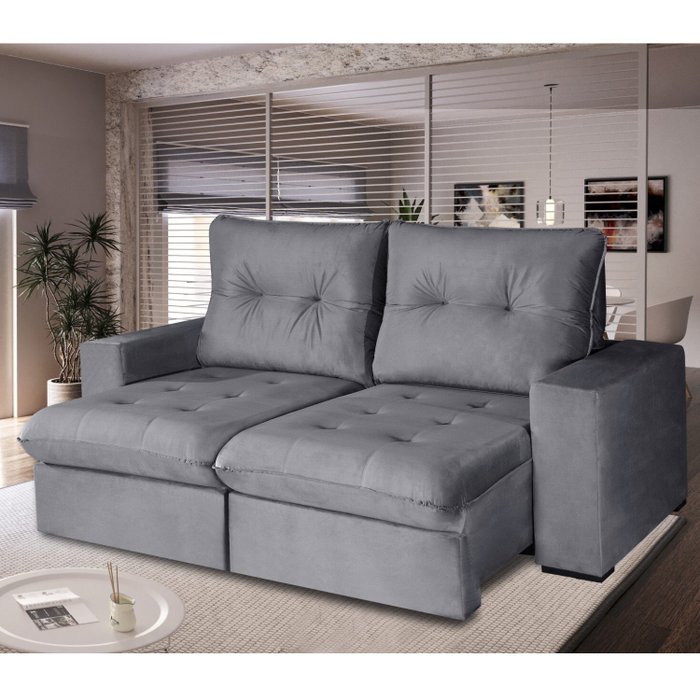 Sofá Retrátil e Reclinável 3 Lugares 180cm com Molas Ensacadas e Pillowtop Colorado Cinza