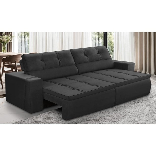 Sofá Retrátil e Reclinável 3 Lugares 2,50m com Molas Stella Suede Adonai Estofados Preto