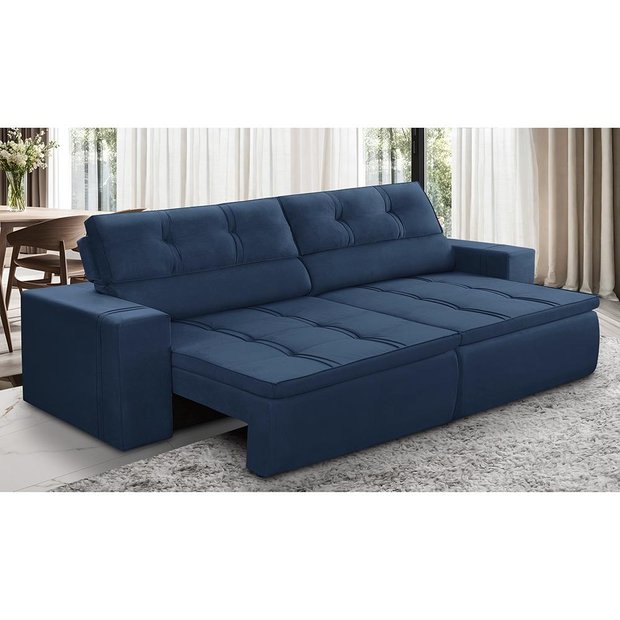 Sofá Retrátil e Reclinável 3 Lugares 2,50m com Molas Stella Suede Adonai Estofados Azul