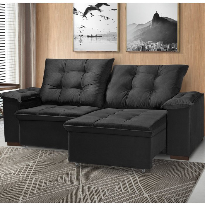 Sofá Retrátil e Reclinável 3 Lugares 200cm Cianita Preto