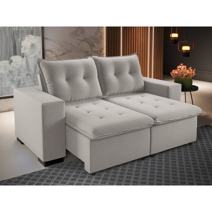 Com inúmeras vantagens estruturais e um design de encher os olhos, o Estofado 3 L Power é a melhor combinação entre comodidade e beleza. O primeiro destaque vai para os rodízios, que deixam a peça facilmente adaptável ao espaço e tornam a reorganização da sala uma tarefa simples. Já a combinação da espuma com ótima densidade assento retrátil e encosto reclinável oferecem o equilíbrio perfeito para aqueles momentos em que você precisa de um descanso mais completo ou para quando vai receber visitas