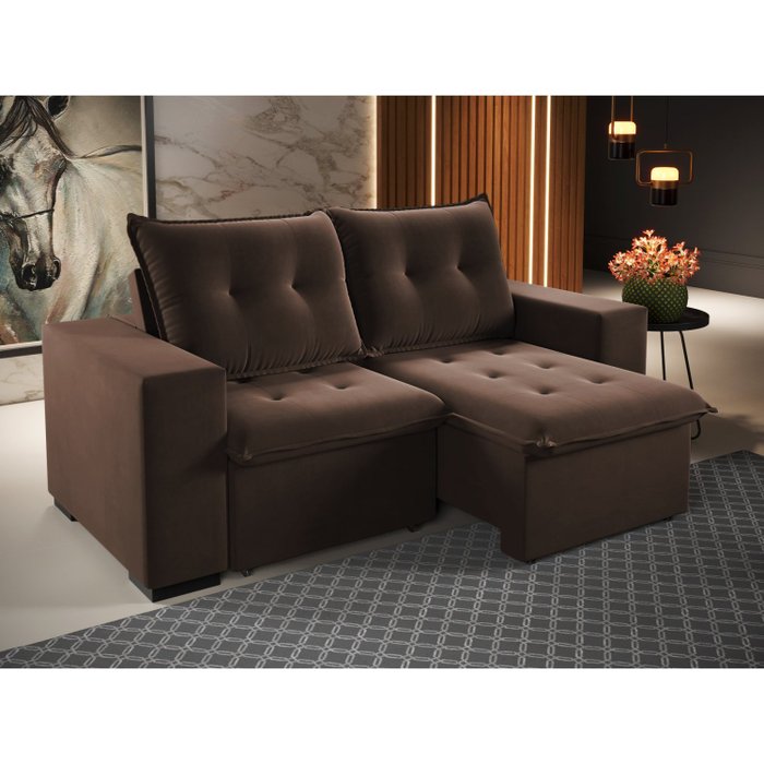 Sofá Retrátil e Reclinável 3 Lugares 200cm Veludo Power Bombom