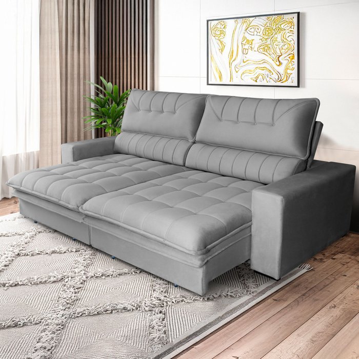 - Dimensões Generosas: O sofá possui 210 cm de largura, 113 cm de altura e 106 cm de profundidade quando fechado. Ao estender os assentos, a profundidade chega a 158 cm, criando um espaço amplo e aconchegante para toda a família.
