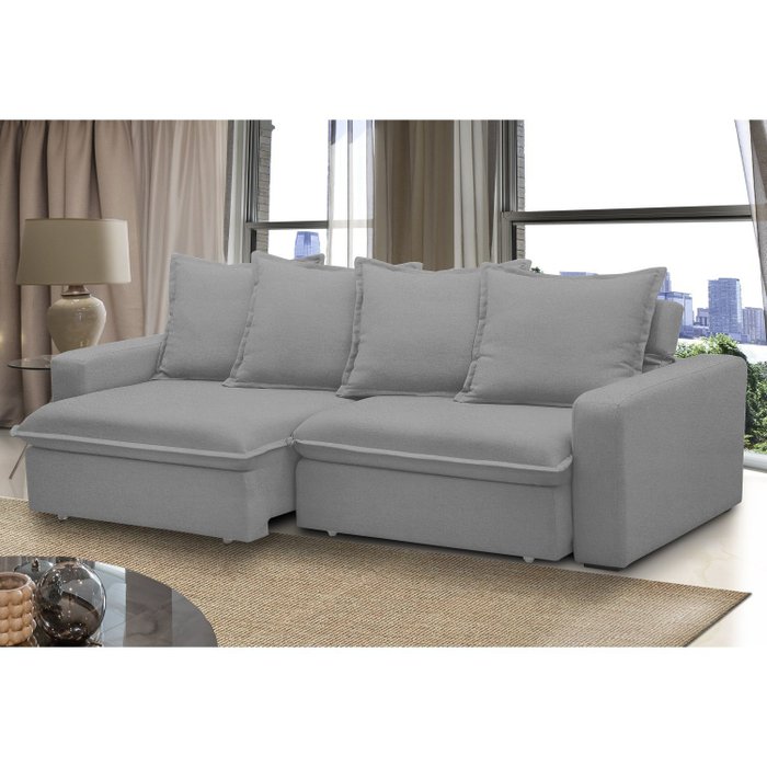 Sofá Retrátil e Reclinável 3 Lugares 215cm Molas Espirais e Molas Ensacadas Vicenza Prata