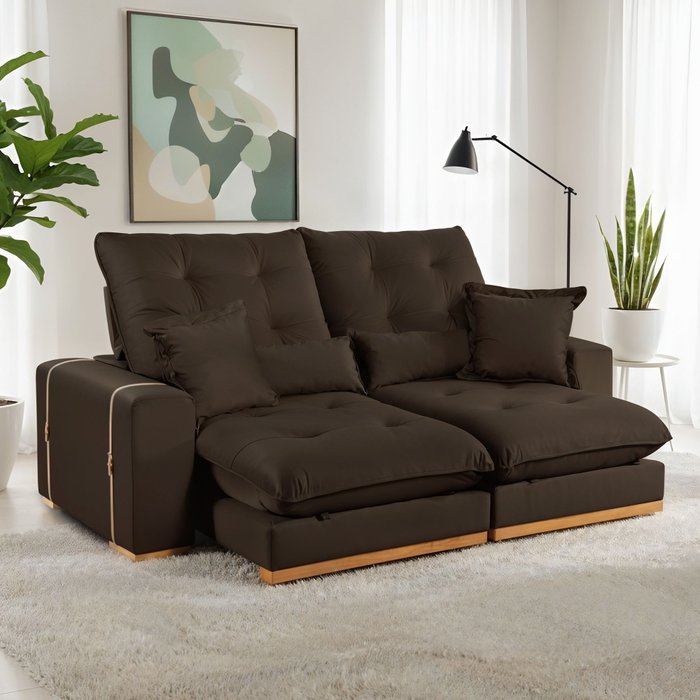 Conforto, estilo e praticidade em um só sofá! Nosso sofá retrátil e reclinável é perfeito para transformar sua sala no melhor lugar da casa. Com detalhes de alças nos braços, ele une charme e funcionalidade, enquanto as almofadas inclusas e rinheiras garantem ainda mais aconchego. Suas cores e modelo combinam com qualquer decoração, trazendo sofisticação e versatilidade para o ambiente. Ideal para relaxar, maratonar filmes e receber visitas com muito conforto!